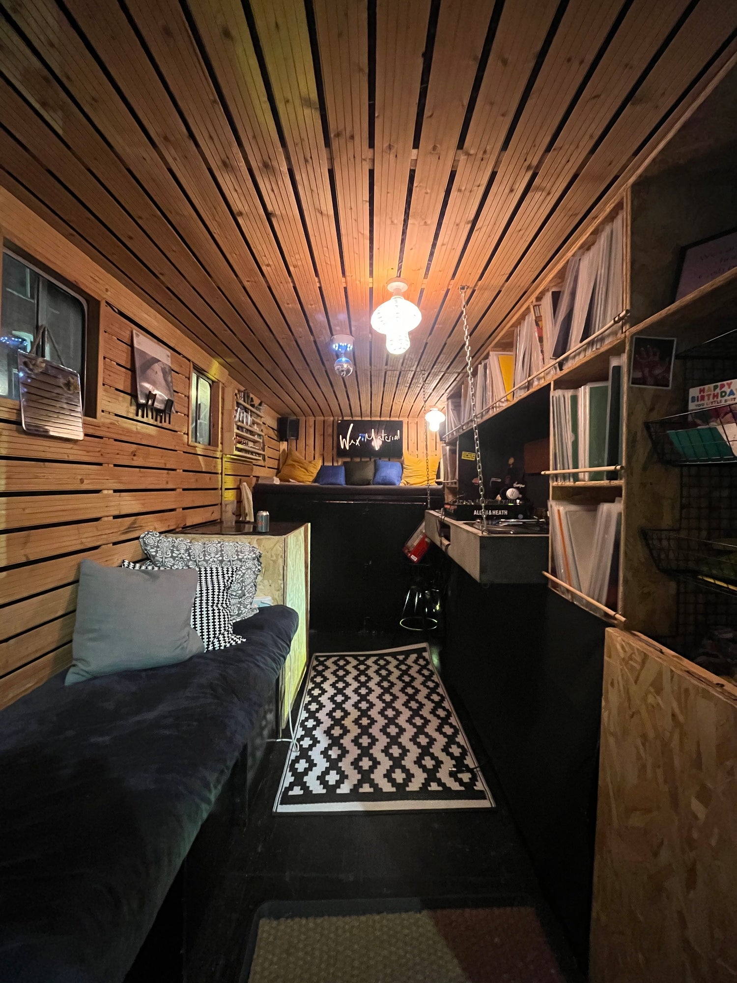 Fridge, Freezer, heater, bed & sofabed, table, kitchen, cooking amenities, cutlery and utensils & a disco ball 🪩